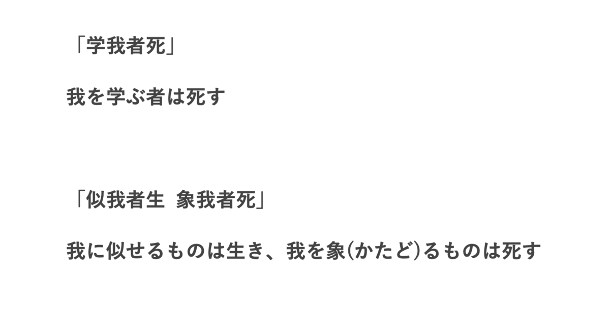 「われを学ぶものは死す」は「私を真似するものは死ぬ」と言い換えることができます。